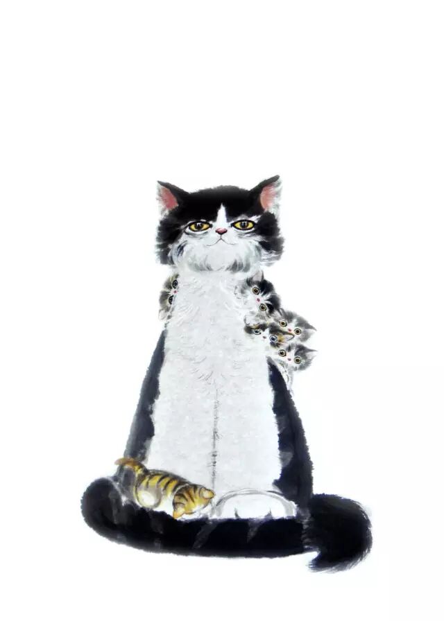 《神咪》 神猫异趣,豁然天性。遥想万万万年,地壳百千变动;极寒暴热,岩滚浆崩。海陆动物灭绝,唯存猫咪精灵。何缘故?鬼神惊!谜团难解万千载,静待睿智后生。(今奇画语)
