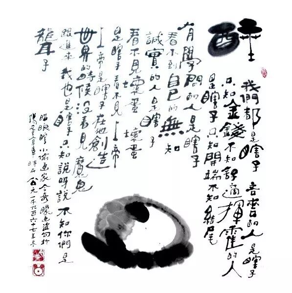 此作品名为“cui”,为今奇创字,意为:半醉半睡”