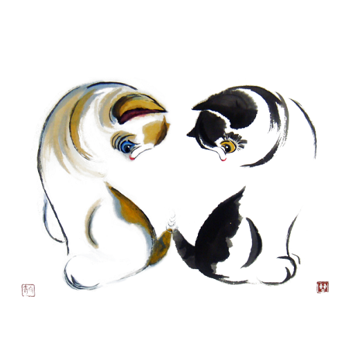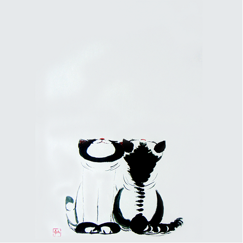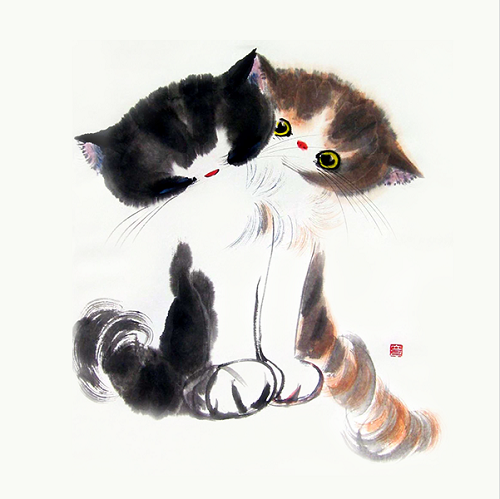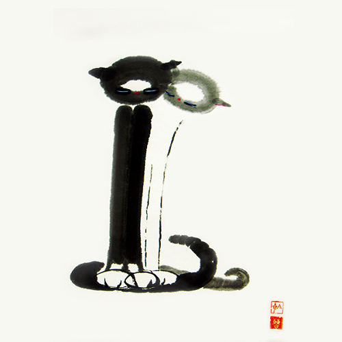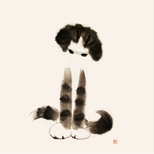 It is the Cat: calm in heart, unaffected by the clamorous world, and optimistic for the future. In her eye, everything is fun: the shadows are real, the wind is real, because they are playing companions; even the bushes and grass are soldiers because they are under her command. After enjoying playing with the surrounding companions, she’ll feel tired and soon fall into a sound sleep, like a cotton ball, awakened by nobody. To be or not to be, this is not a question to her. This is Cat’s nature; this is why Cat is considered as “God”.